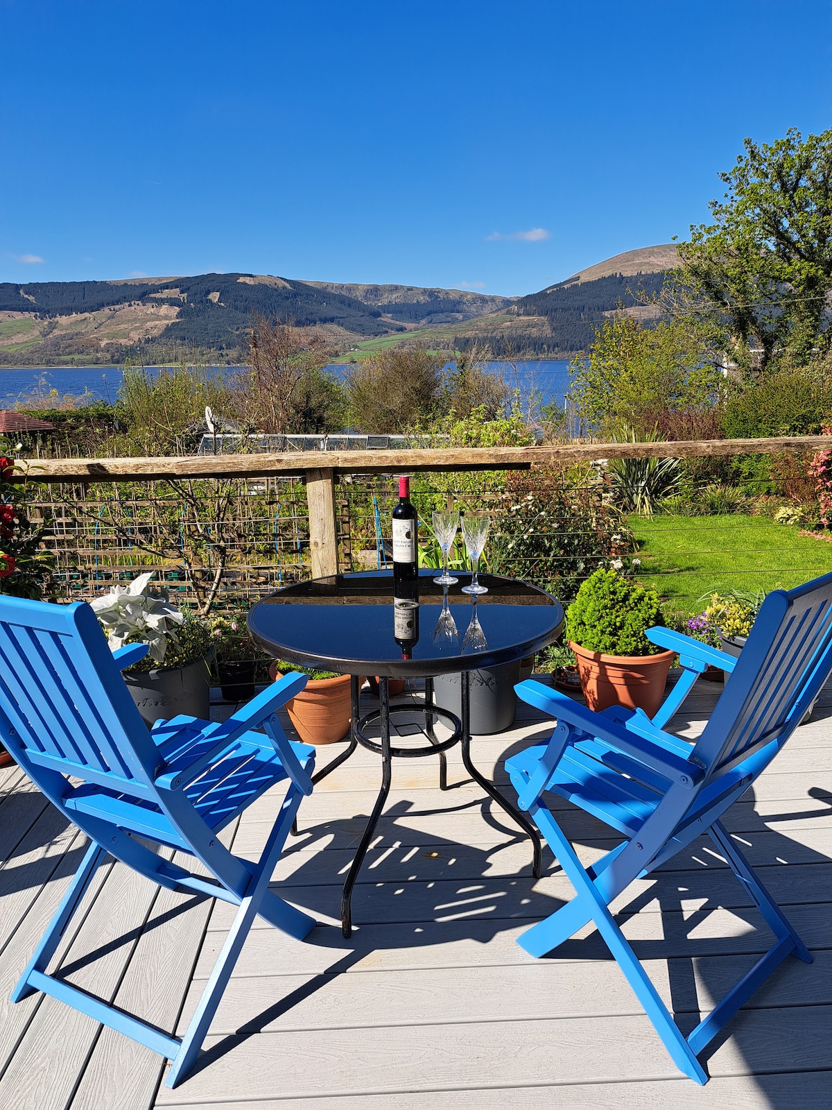 숙박 2/3 본관에 딸린 독립형 아파트로 전용 출입구가 있으며, 두눈 중심부의 바닷가에 위치해 있으며, 클라이드 강을 가로질러 쿰브레이, 부트, 아란까지 내려다보는 멋진 전망을 자랑합니다. 승객 페리까지 1/4마일, 헌터스 퀘이 자동차 페리까지 1.5마일, 상점, 영화관, 음식점까지 도보 5/10분 거리입니다. 산책, 자전거, 카약, 수영. 소파 베드가 있는 책이 가득한 라운지/서재, 더블 침실, 주방, 샤워실, 물고기 연못이 있는 안전한 뒤쪽 정원을 이용할 수 있습니다. 저희 강아지에게 친근하다면 반려견을 환영합니다.