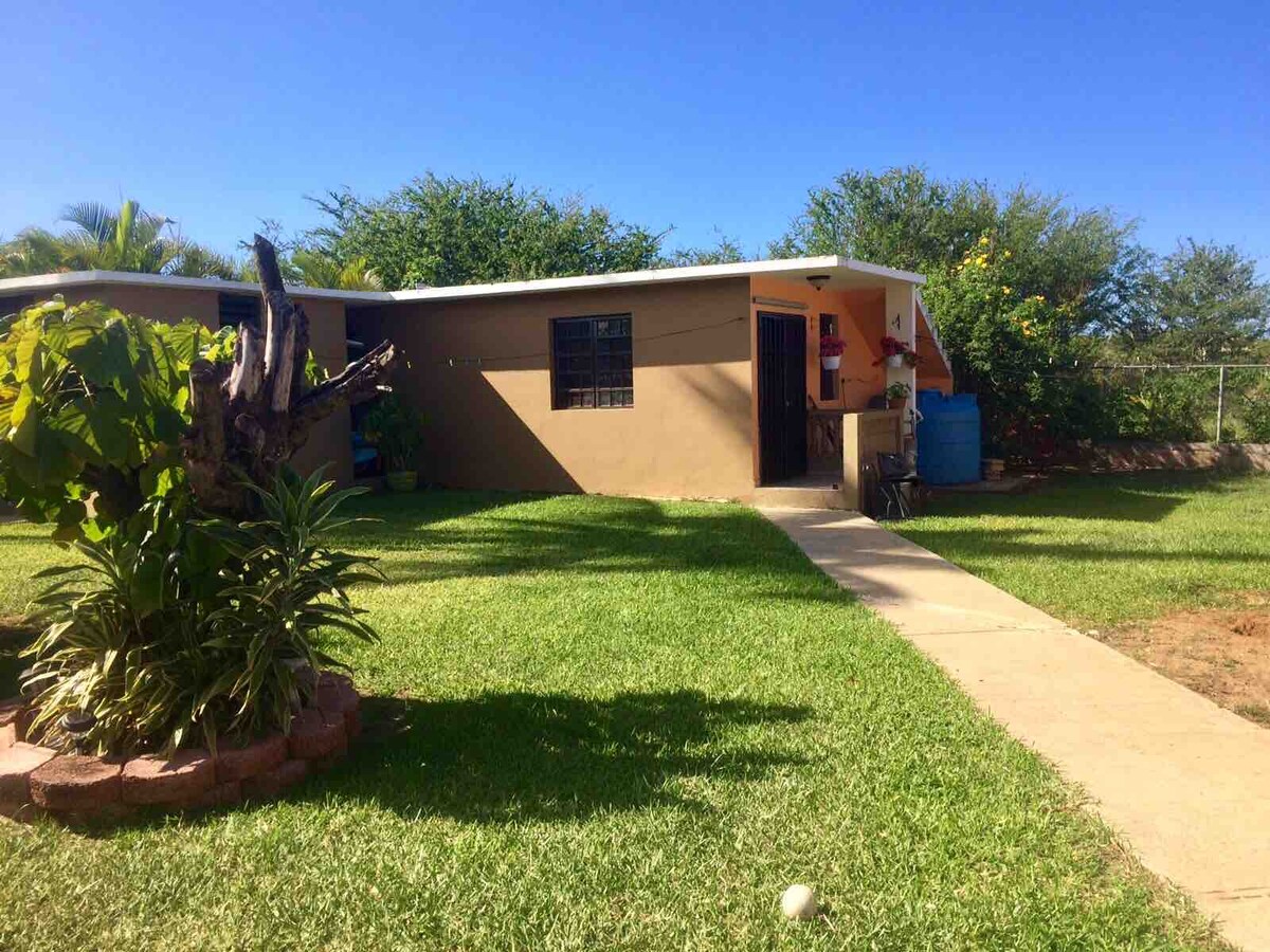 Cozy studio on the back yard of a main family house. The property is on a family owned private street.Shared room. Two beds separated by a wall,no door. Sitting space, garage. One bathroom. Walking distance to bakery, pharmacy, doctors and barber shop. Minutes away from main roads and highways, grocery store and shopping malls. It is 6 min away from main Hospital Metro Pavia on street #129. It is 15 min away from Islote and Caza y Pesca Beach.We have a power generator and water reserve.