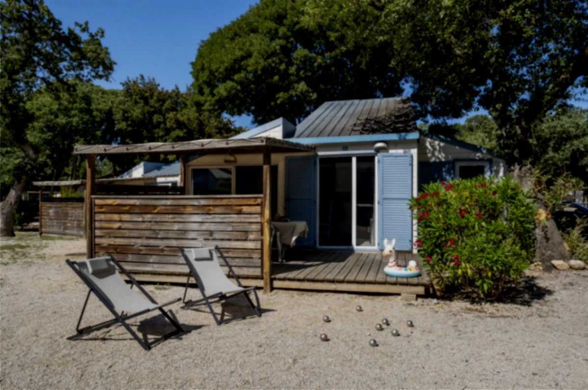 Maisonnette pouvant accueillir jusqu'à 6 personnes proche des ostréiculteurs dans une résidence naturiste calme. La petite terrasse permet de manger dehors avec la vue sur la mer. Une chambre double en mezzanine avec de nombreux rangements, une chambre cabine avec lits superposés et un canapé lit. La cuisine est équipée de plaque à induction, cafetière, bouilloire et micro-ondes et BBQ électrique. Les draps et serviettes sont fournis en option (merci de préciser dans votre demande).