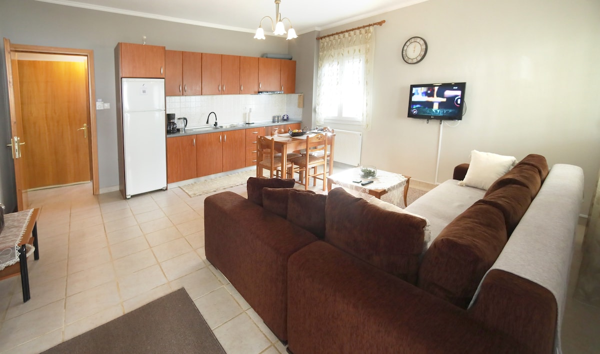 카스토리아에서 최고의 편안함을 경험하세요 - 집처럼 편안한 아파트에서 머물러보세요! 110평방미터의 밝고 넓은 공간에서 집처럼 느끼는 데 필요한 모든 것을 찾을 수 있습니다. 스트레스 없이 하루 중 언제든지 편안하게 주차하실 수 있습니다. 아름다운 침실 2개, 편안한 소파 베드가 있는 넓은 거실, 장식용 벽난로, 완비된 현대적인 주방, 휴식을 위한 욕조가 있는 욕실.