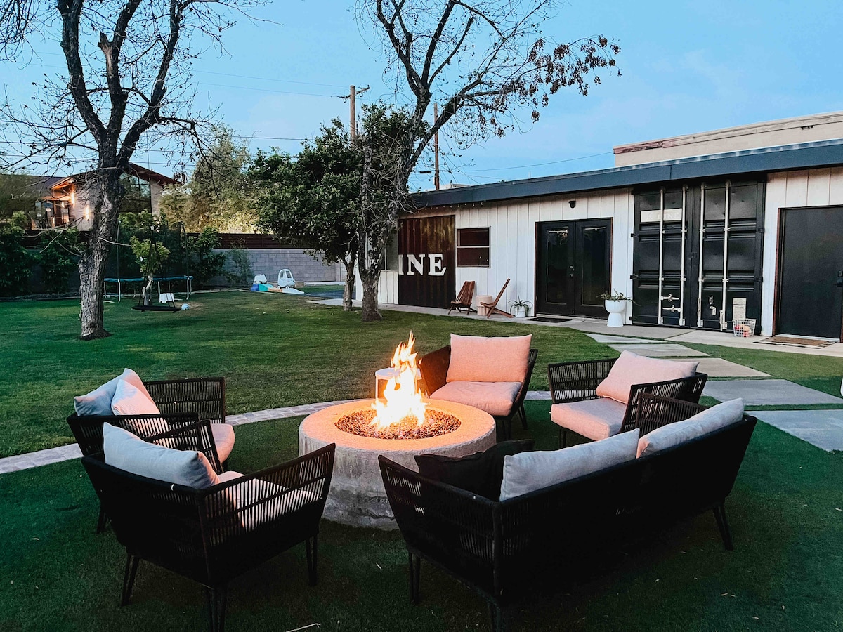 Great central location! Close to downtown, major freeways, the Biltmore, hiking, and lots of great restaurants. Make yourself at home in this part shipping container. Run around in the yard, warm up by the fire pit, take a swim in the pool, and enjoy all that Phoenix has to offer! This is a detached guest house and the backyard is a shared space.