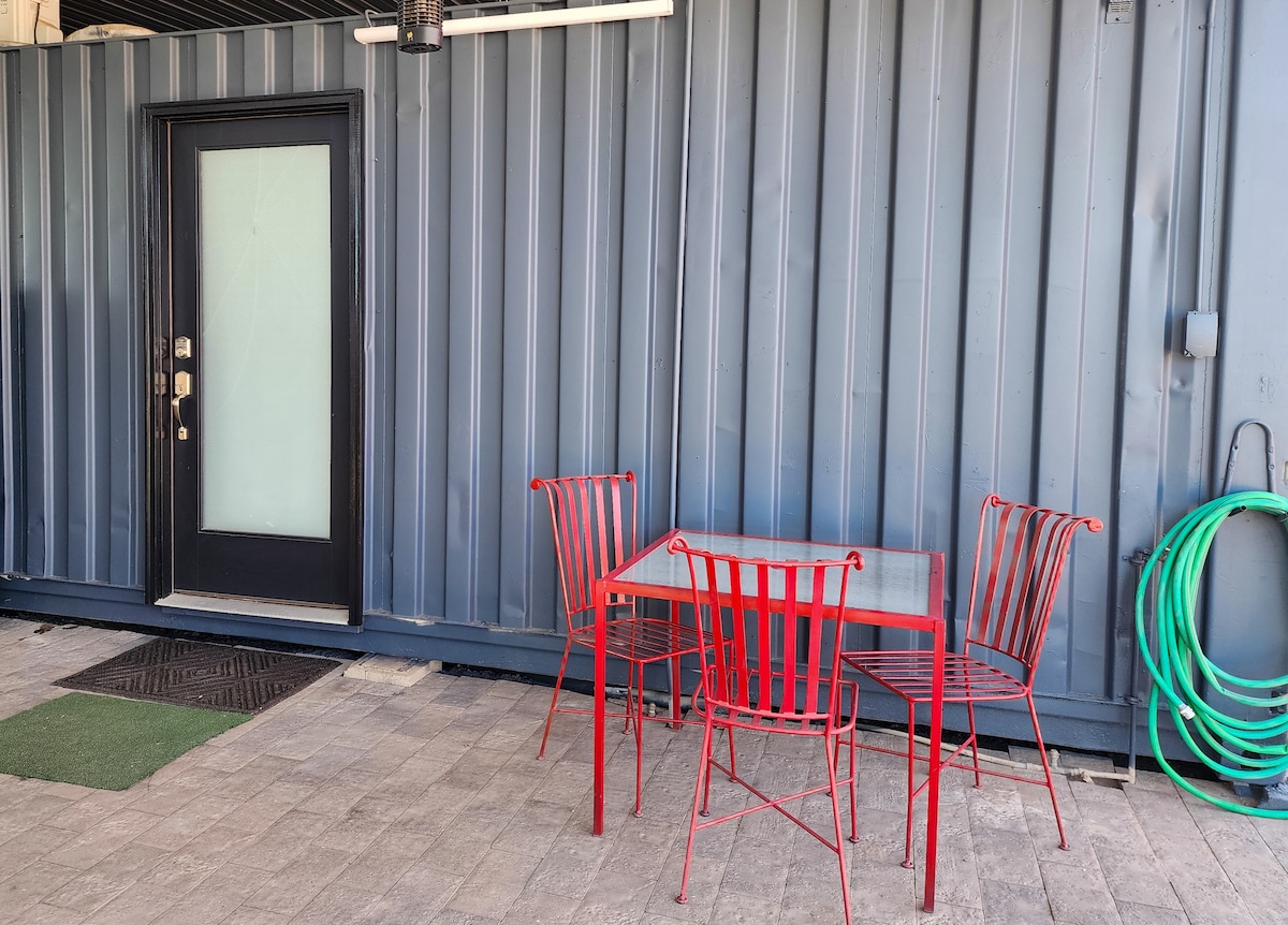 Greet the morning sun by opening the sliding doors and enjoying tea or coffee in your own private backyard oasis. This space is designed for those seeking a unique experience! Includes WIFI and own private bathroom/shower (next door to container). Sleeps 2-3 comfortably. Centrally located to all PHX has to offer(15-20 minutes north of airport(just off I-51) and Downtown, 15 min. from Scottsdale. Great stop over on way to Sedona and Grand Canyon!