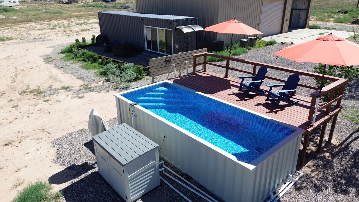 Escape to this modern shipping container retreat in the serene landscape of Cornville, Arizona, just minutes from Sedona. Perfect for couples or single travelers, this unique getaway blends sleek design with natural beauty. Soak in the private hot tub, unwind in the stargazing lounge chairs, or cook a cozy meal in the fully equipped kitchenette while taking in peaceful mountain views. Please see our guidebook for recommendations! We are a small family run business! Shop Small, Stay Local💛
