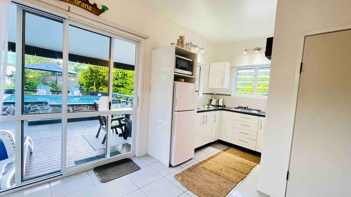 최고의 스노클링 해변에서 200미터 거리에 있으며, 라로통가 비치 리조트와 가깝고, 주변에 식당 및 테이크아웃 시설이 있습니다. 최대 3명까지 숙박할 수 있는 새롭게 리모델링된 독립형 숙소 무료 고속 와이파이 - 스타 링크, 에어컨 양쪽 바깥 좌석 - 한쪽에는 아름다운 정원이 있고, 다른 한쪽에는 멋진 언덕 전망이 있습니다. 에어비앤비에 Paradise Escape Unit 2로 등록된 스튜디오 유닛도 있습니다. 추가 게스트를 수용해야 하는 경우