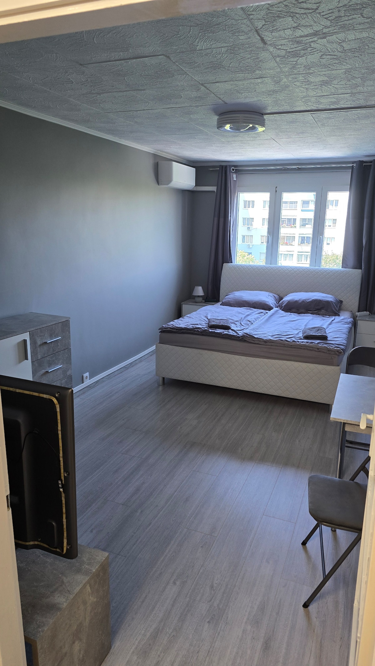 Welcome to my apartment in the 13rd district. The apartment is newly renovated and designed. The flat is a spacious apartment and full kitchen. The apartment is fully furnished. You can find everything you need (A/C, tv, wifi, washing machine, coffee machine, hairdryer, iron, towels etc.) Only 3 metro stops from the center. It is 10-12 minutes from the city center. Public transport (subway, tram, buses) to the city center, market, playground, pharmacy, restaurants, cafes, bakery are all nearby.