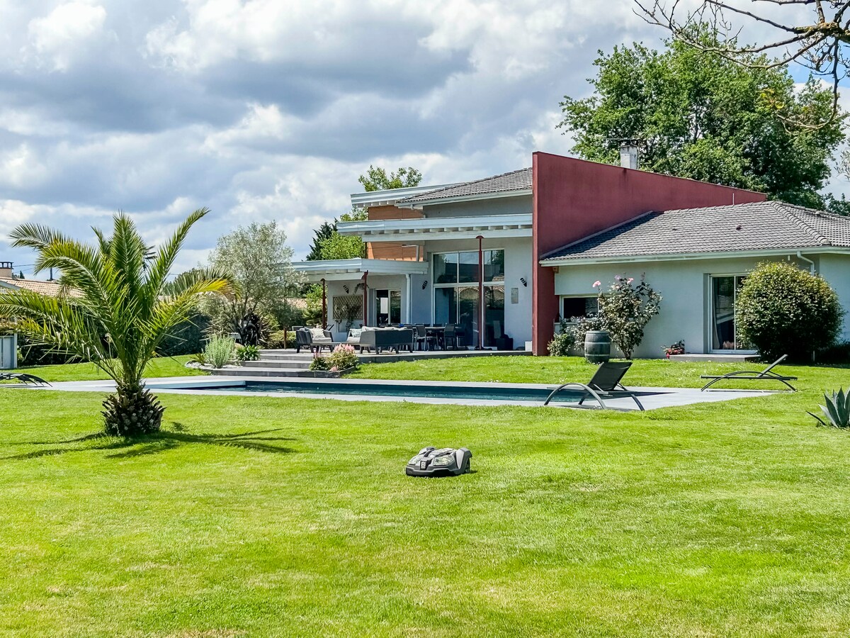 메독에 위치한 개조된 전원주택(150m2)과 전용 스파(연중 무휴). 집 뒤쪽 남향 정원은 450m2로 울타리로 완전히 둘러싸여 있으며 야외 벽난로에 큰 바비큐 시설이 있습니다. +차고 +집 앞 주차장. 식사 공간, 식기 세척기가 있는 주방, 전용 욕실이 있는 침실 3개, 화장실 2개, 차고, TV, 와이파이로 구성되어 있습니다. 여러분의 즐거움을 위해 숙소에는 당구대, 탁구대, 다트가 마련되어 있습니다.
