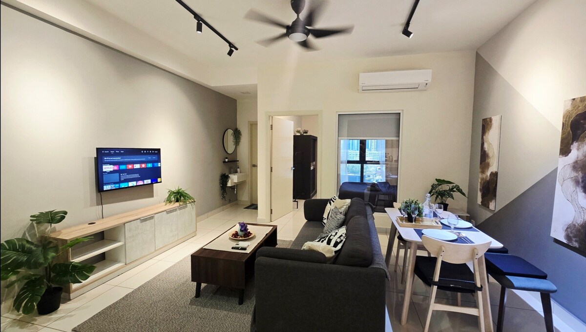 Find serenity in a modern condo away from the hectic city centre. Decor is done in relaxing neutral tones, and there's a pleasing view from high-floor windows. Work up a sweat in the gym and luxuriate in a bathtub before turning in for the night. Suite can comfortably accommodate up to maximum 3 adult guests and it comes with a king size bed in the master bedroom, 1 sofa bed in the living suitable for sleeping. Guest can access to facilities swimming pool, gym, games room, and badminton. If you are driving, the owner's parking lot could be used during your stay. We are contactable should Guest need any assistance or support. The condo is in the Mont Kiara township in northwest Kuala Lumpur. It's situated above a mall with an array of restaurants, cafes, bars, and a supermarket along with lifestyle and fashion shops. Getting into the city centre is a breeze from here. Getting around is rather easy as there are several pick up and drop off areas for ride hailing apps such as Grab that enable guest to commute.