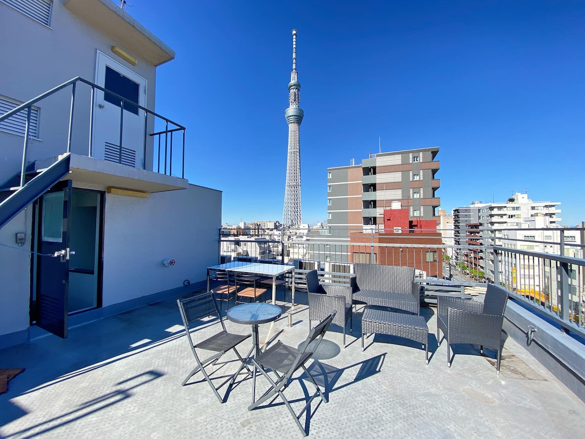 MAX10인 2세트 욕실 2개 스위트룸 엘리베이터 스카이트리역 도보 5분 공항 직행 주방 세탁기