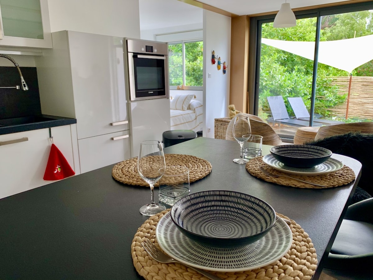 휴가지 숙소 5 ⭐️ 이 휴식의 거품 속에서 에너지를 충전하세요. 1층의 작은 레지던스에 위치한 85m2 신축 아파트로 3명을 수용할 수 있는 자쿠지, 사우나, 전용 테라스를 갖추고 있습니다. 평화롭고 편안한 위치에서 즐거운 시간을 보내세요. 조식 €25 로맨틱한 인테리어/생일 € 25 라클렛 트레이 2인용 €40 샤퀴트리와 치즈 식사 트레이 €40