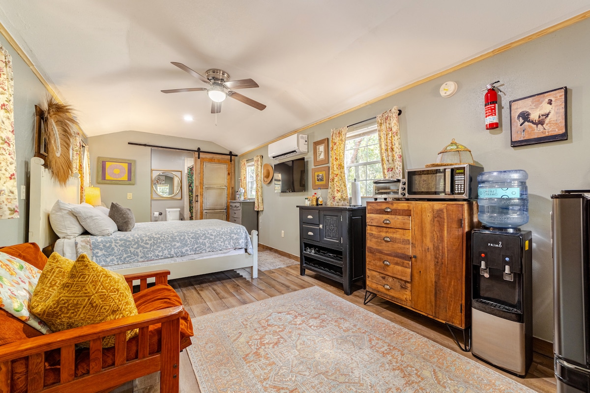 저희 스튜디오 코티지는 반려동물을 동반할 수 있으며 2명이 편안하게 잘 수 있습니다. 편안한 숙박을 위한 모든 필수품을 갖춘 작은 집입니다. 유서 깊은 시내에서 5분, 세계에서 가장 유명한 해변인 데이토나 해변까지 30분 거리에 있습니다. 아침에 닭들이 낳은 신선한 달걀을 즐기고 10분 거리에 있는 스프링스로 향해 시원한 수영을 하거나 매너티를 구경하세요.