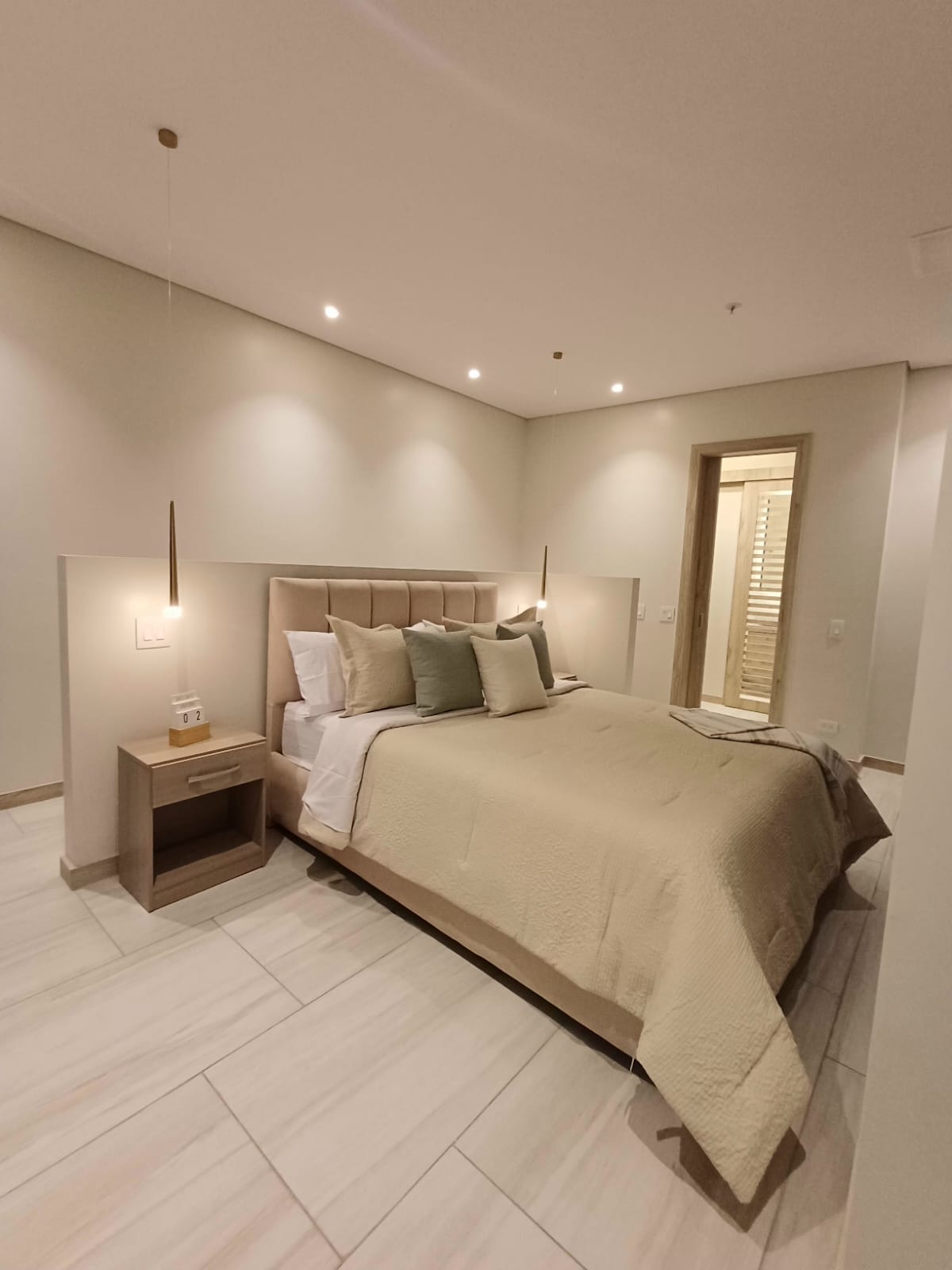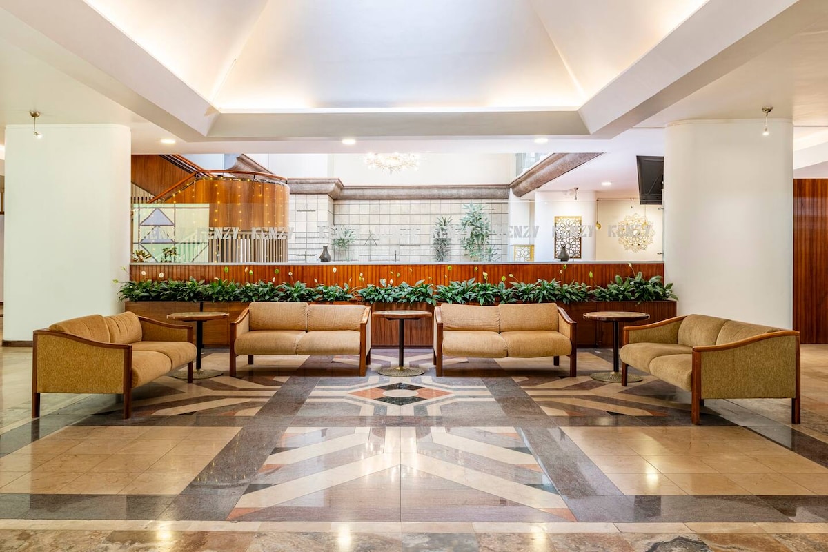 Ideal para ejecutivos, viajes de negocio y turismo. Para el buen descanso y despertar con energías, la habitación cuenta con una Cama King con Colchón Simmons Erica Luxury Firm Pillow Top 3 Plazas. Para facilitar tu estancia disfruta de: Máquina de capuchino y café Horno Microondas Mini Nevera Smart LED TV Samsung Escritorio Cómoda y Armario Mesa para planchar + Plancha Secadora para cabello Detector de Monóxido de Carbono y Detector de Humo Acceso independiente con tarjeta magnética