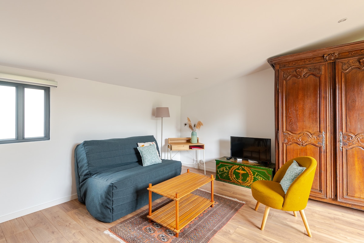 바����이 지구의 조용한 거리에 위치한 예쁜 게스트 하우스입니다. 침실 1개, 욕실 1개, TV, 와이파이, 냉장고, 세탁기, 침구, 수건, 행주, 욕실 매트. 도로에 쉽고 무료로 주차할 수 있습니다. 상점, 약국... 및 대중교통 도보로 3분 거리: - 15분 거리에 있는 보르도 시내와 3정거장 거리에 있는 시테 뒤 뱅(와인 도시)로 가는 트램 정류장. - 15분 거리에 있는 보르도 라크 전시장으로 가는 버스 정류장 - 아르카숑 만, 생테밀리옹 등으로 쉽게 이동 가능
