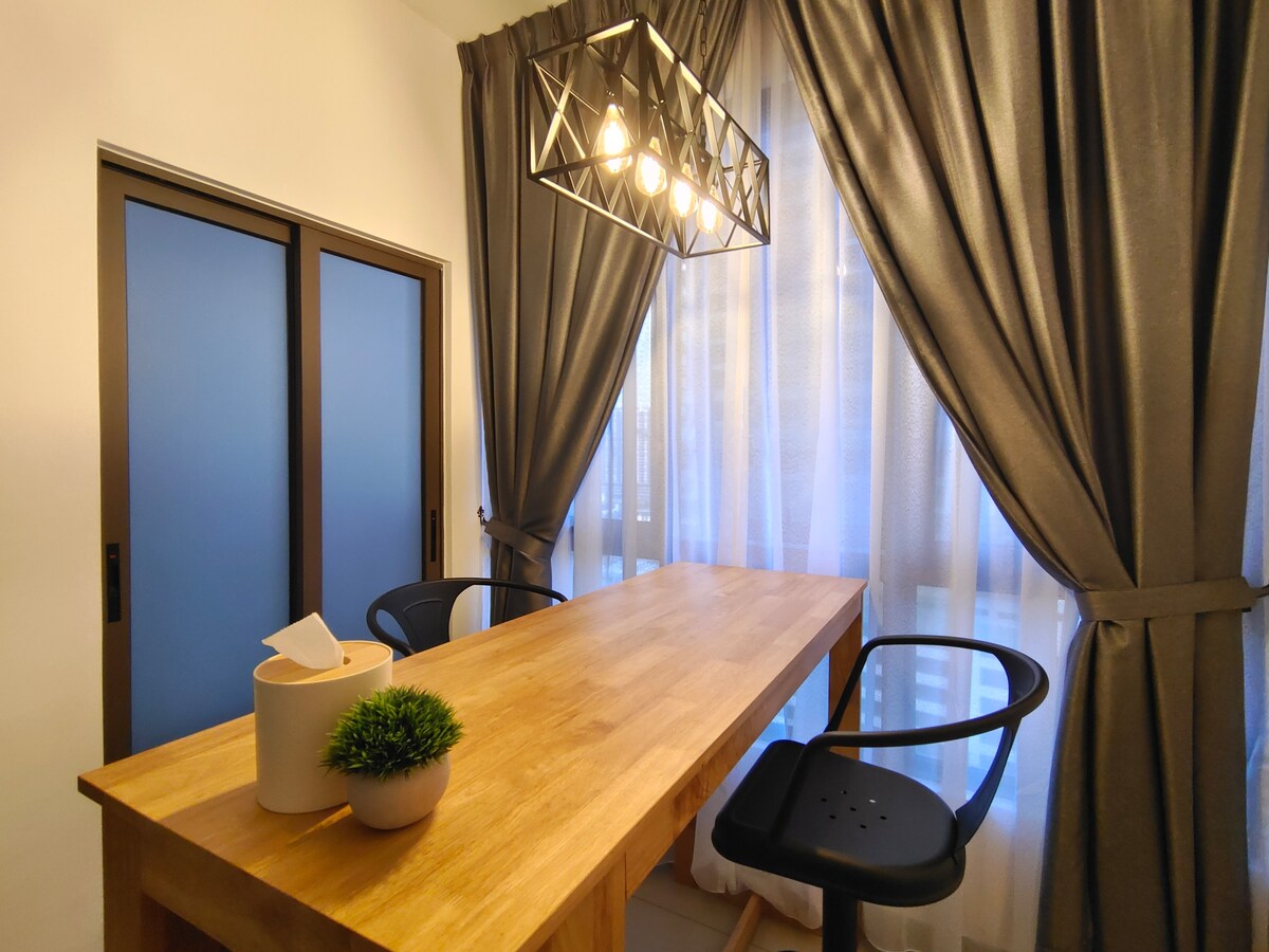 The Pine 2 is a fully-furnished brand new serviced-apartment with 1 bedroom and can accomodate up to 6 persons. The contemporary design is inspired by the pine woods with gorgeous combination colours including brown, white and grey. This homestay is perfectly for couple as well as family with baby/kids. Provided with Unlimited fiber internet wifi, you will enjoy your day surfing your favourite internet and also for business purposes. Nerflix also provided, you can enjoy online movies/dramas.