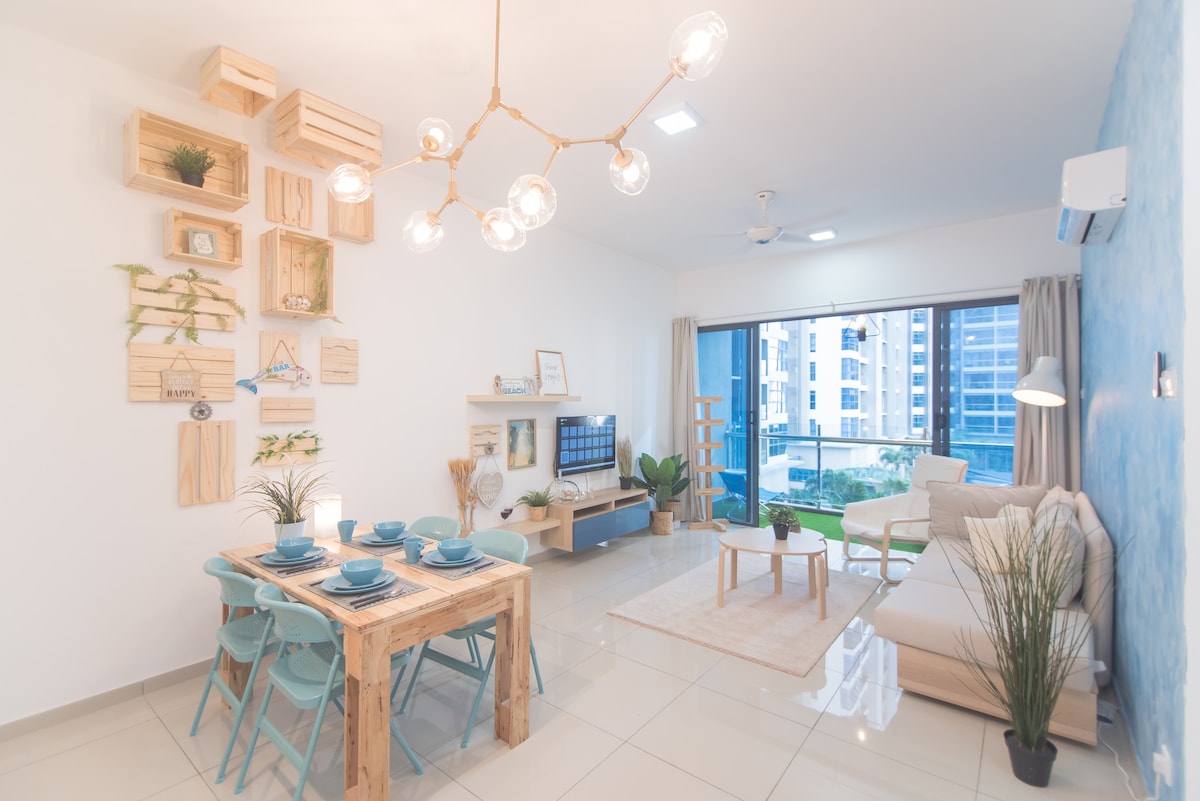 Atlantis Residence , Beach theme cafe design fully furnished perfect for couple traveler, friend & family chill around, Kitchen equipped with induction cooker & Smart TV with Netflix (Signed In) YouTube function , located at kota syah bandar, heart of Malacca Town, with huge infinity pool & Sky bridge , Easily accessible jonker street, historical place & landmarks (4-5KM)