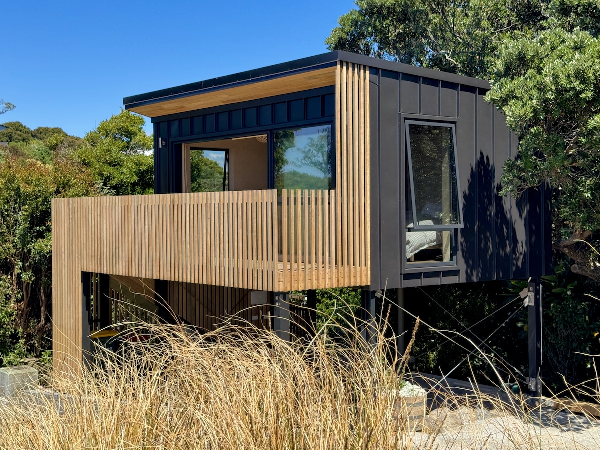 This unique, freestanding tiny house with lean-to is a private, welcoming space and is ideal for one person or a couple. It has a small, private fenced yard and a dedicated free parking space for one vehicle in the front. Everything you need to prepare a delicious meal is provided in the fully equipped kitchen: pick up your supplies at the supermarkets in Hobsonville or the Farmers Market at the weekends at Hobsonville Point.