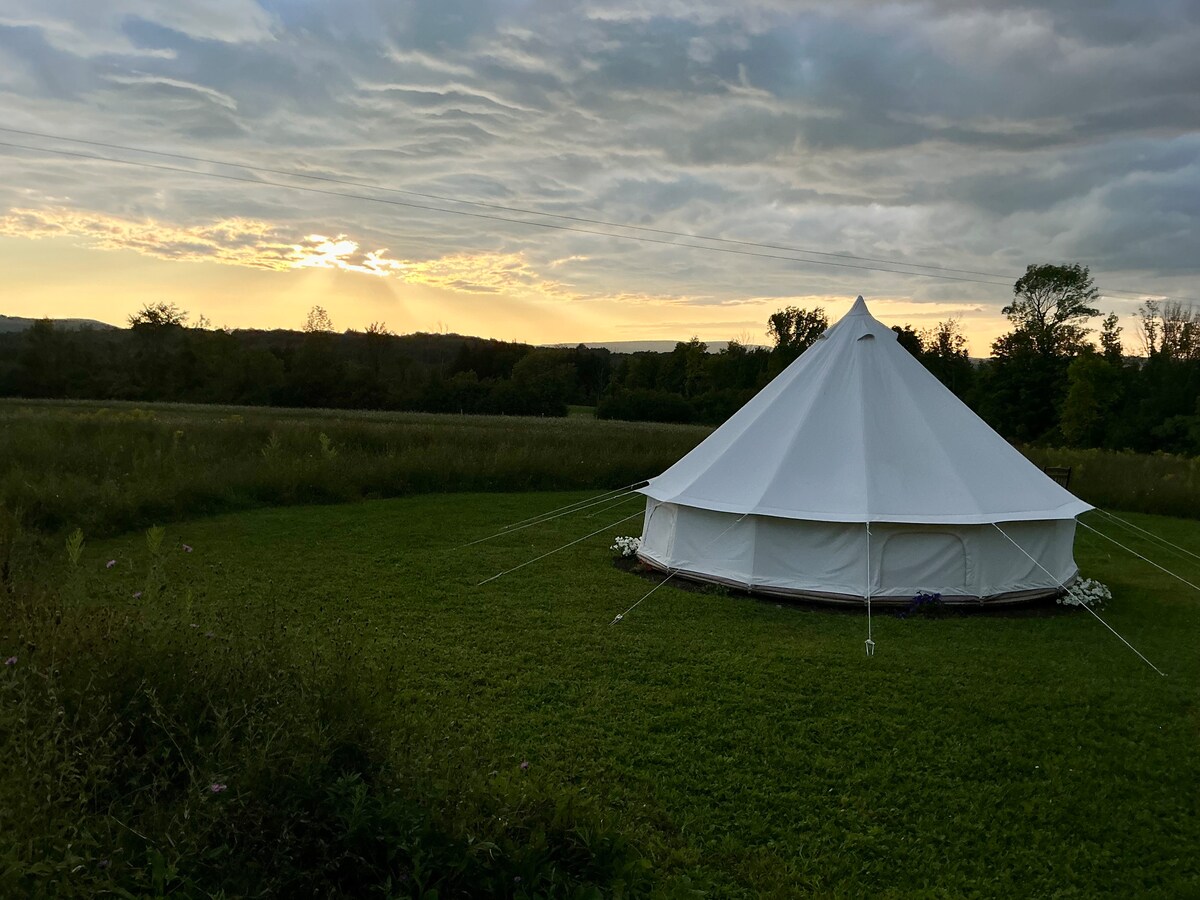 Enjoy the beautiful NY evenings and get away from it all with a campfire and tent under the stars. You’ll have a shower/toilet shed and campfire area to enjoy as well as the specious, 16’ tent and a gorgeous view! We are minutes from Sharon Springs and 25 minutes to Cooperstown. We have bedding, towels and blankets but bring your favorite pillows and water. Our goal is to provide you with all the necessities and a place to make memories. We live on the property but you’ll have complete privacy.