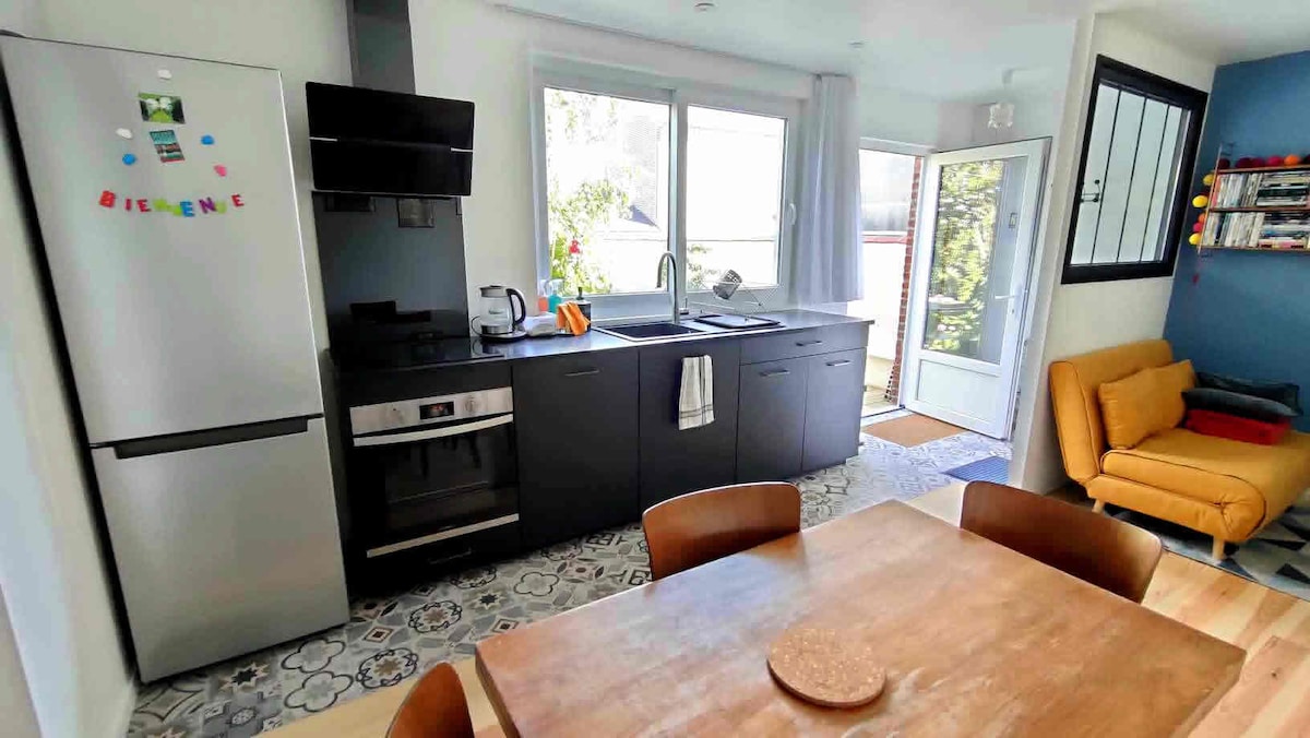 Venez sรฉjourner dans notre Maison de campagne, ancienne bรขtisse normande entiรจrement rรฉnovรฉe et dรฉcorรฉe en 2022, situรฉe sur un grand terrain arborรฉ et clos de 2000m2. Trรจs confortable et chaleureuse, elle se compose dโune grande piรจce de vie de 60m2, d'une cuisine entiรจrement รฉquipรฉe, de 2 chambres et d'une grande salle de bain. Vous profiterez dโune grande terrasse avec salon de jardin, barbecue et parasol. Idรฉalement situรฉe ร 3min de la plage de Pourville-sur-Mer et ร moins de 2H de Paris.