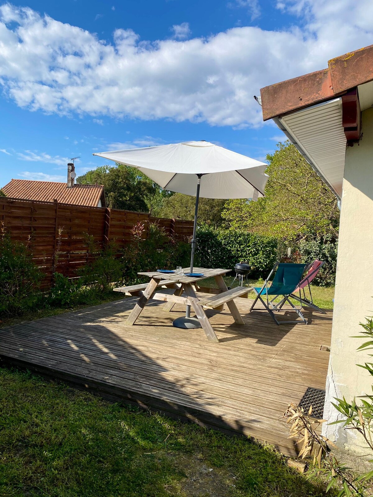 오르레일한 호수에서 몇 걸음 떨어진 70m2의 집으로 최대 6명까지 수용할 수 있습니다(4명에게 이상적임) 일몰에 햇살을 즐길 수 있는 서쪽 방향의 테라스, 그중 하나는 바비큐 시설과 식탁이 있는 완전 지붕이 있습니다. 울타리 내부 주차장 자전거 도로 100미터 수제 빵집과 LIDL 200미터 1.5km 거리에 위치한 미미잔 마을(르클레르, 맥도날드, 차고) 대서양과 바, 레스토랑이 있는 미미잔 해변 10km