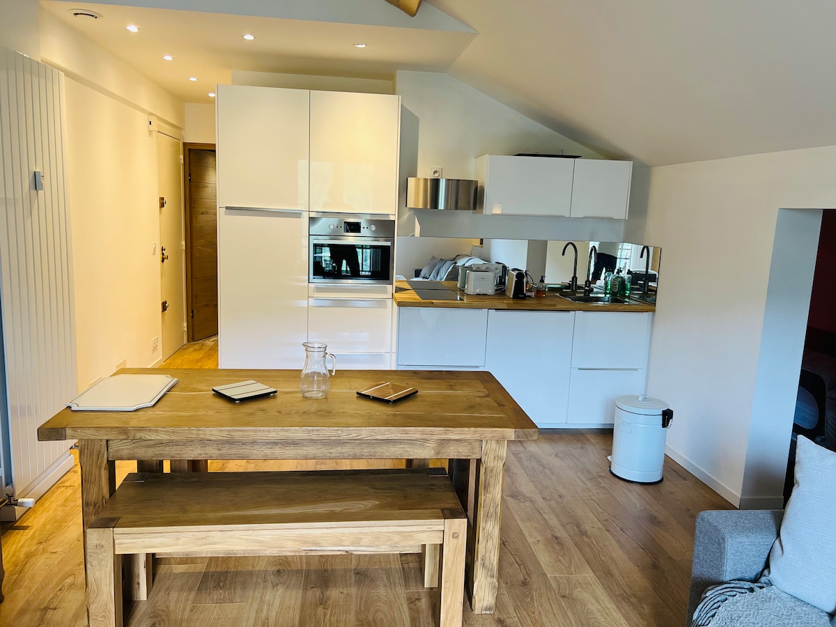 1층에 위치한 이 멋진 스튜디오는 새롭게 단장한 이층 침대 캐빈을 갖추고 있으며 현대적인 스타일과 산의 정신이 조화를 이루는 경험을 제공합니다. 침구와 수건이 제공됩니다! + 남향 + 슬라이딩 도어로 분리된 이층 침대 객실 + 실내 전용 주차장 + 라클렛 및 퐁듀 기기. + 와이파이 아파트는 중앙 광장 근처에 위치하고 있습니다(도보 5-7분).