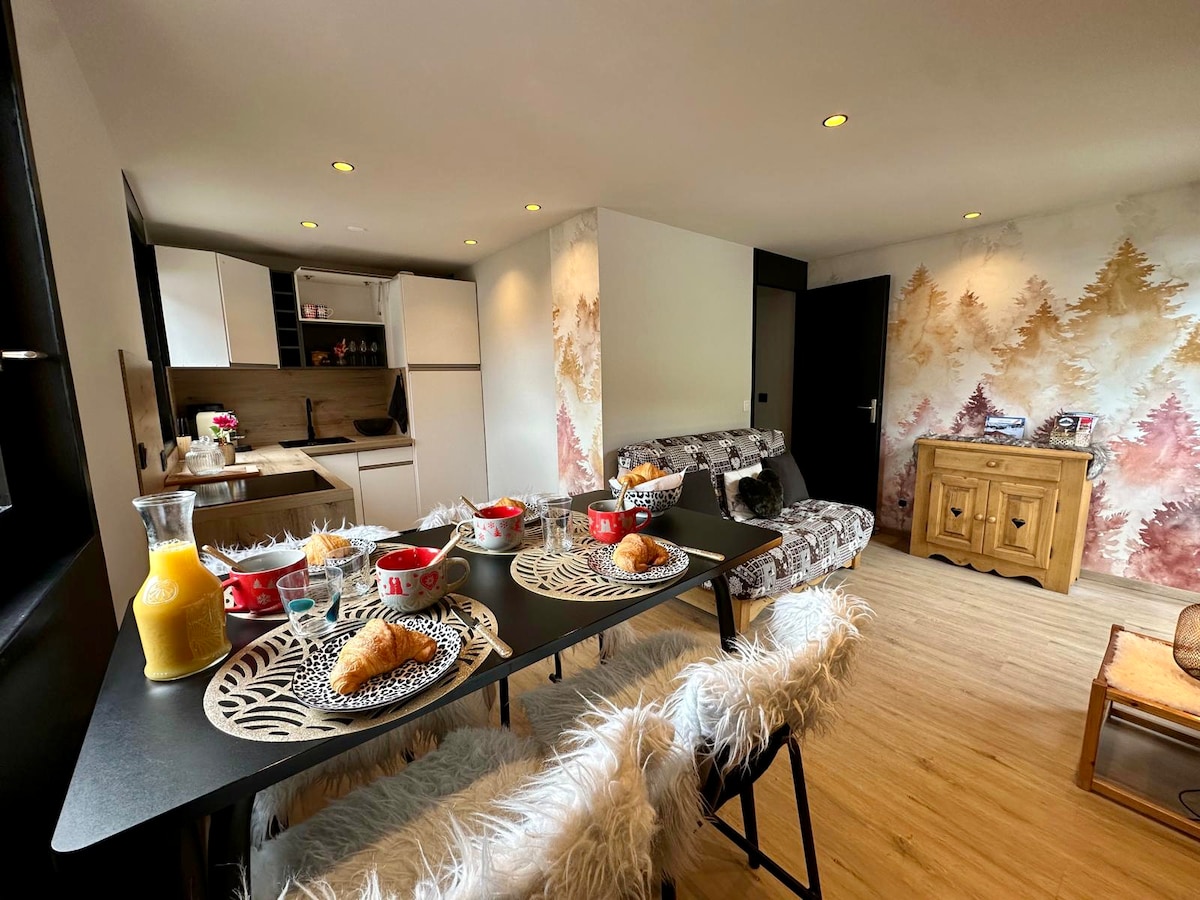 2인용 새롭고 따뜻한 산속 스튜디오. 조용하고 편안한 환경. 남쪽(주방/거실)과 북쪽(거실/침대/테라스)으로 향하며 산의 아름다운 전망을 자랑합니다. 상점가가 많은 마을 중심지와 가깝습니다. 숙소 근처와 숙소 앞에 무료 주차장이 있습니다. 150m 거리에서 셔틀 마을을 탈 수 있습니다(겨울). 바누아즈 국립공원 입구에서 여름에 즐길 수 있는 많은 산책과 액티비티(VTT, 수영장, 비아 페라타...).