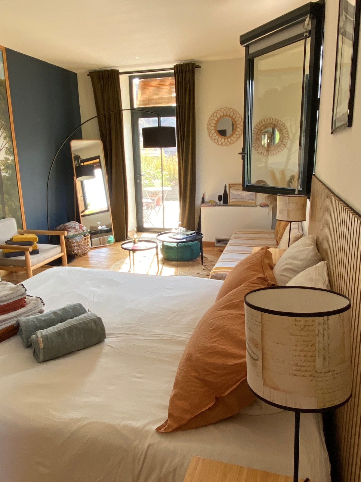 Chambre 30m2, petit-déjeuner inclus, terrasse.