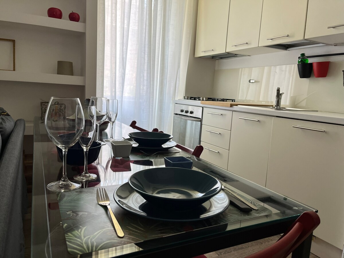 리노베이션되고 세밀하게 가구가 배치된 이 아파트는 2층에 침실 2개, 시설이 완비된 주방이 있는 거실, 욕실 1개, 욕실 1개, 에어컨, 와이파이, DVD 플레이어가 있는 TV, 금고가 있는 전형적인 건물에 있습니다. 역사적인 도심에서 매우 가깝고, 버스 정류장 앞, 지하철 B에서 도보로 10 ~ 15분 거리에 극장, 영화관, 현대 미술관, 상점, 펍, 피자리아가 있습니다. 짧은 휴가를 보내거나 긴 휴가를 보내실 수 있습니다.