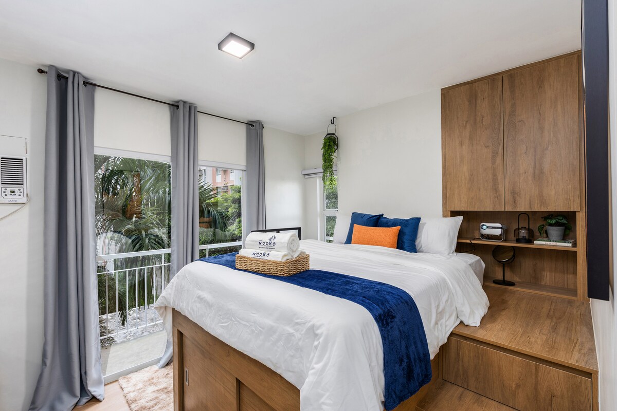 발코니, 높은 퀸사이즈 침대, 싱글 소파 베드, 4K 시네마 프로젝터가 있는 젠 스타일의 코너 유닛인 누쿠 스튜디오에서 휴식을 취하세요. 세부 IT 파크와 JY 스퀘어에서 불과 몇 분 거리에 있으며, 탑스와 리아 사원과 같은 산악 명소로의 차량이 있습니다. 세부 비즈니스 파크와 시내로 가는 PUJ 노선도 도보로 몇 분 거리에 있습니다. 평화로운 분위기에서 수영장, 헬스장, 정원을 즐기세요. 1인 여행객, 커플 또는 3인 그룹에게 적합합니다.