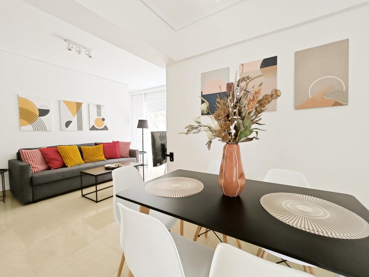 ✅ Special Discount! Book online using voucher code 20215 at verdeapartments gr or call or text SMS ✛30➅➈➆➆➂➁➄➈➆➃ 2 bedrooms | 90 sq.m. | Ground floor up to 5 people | 2 double beds in the bedrooms, 1 sofa bed in the living room | Home office