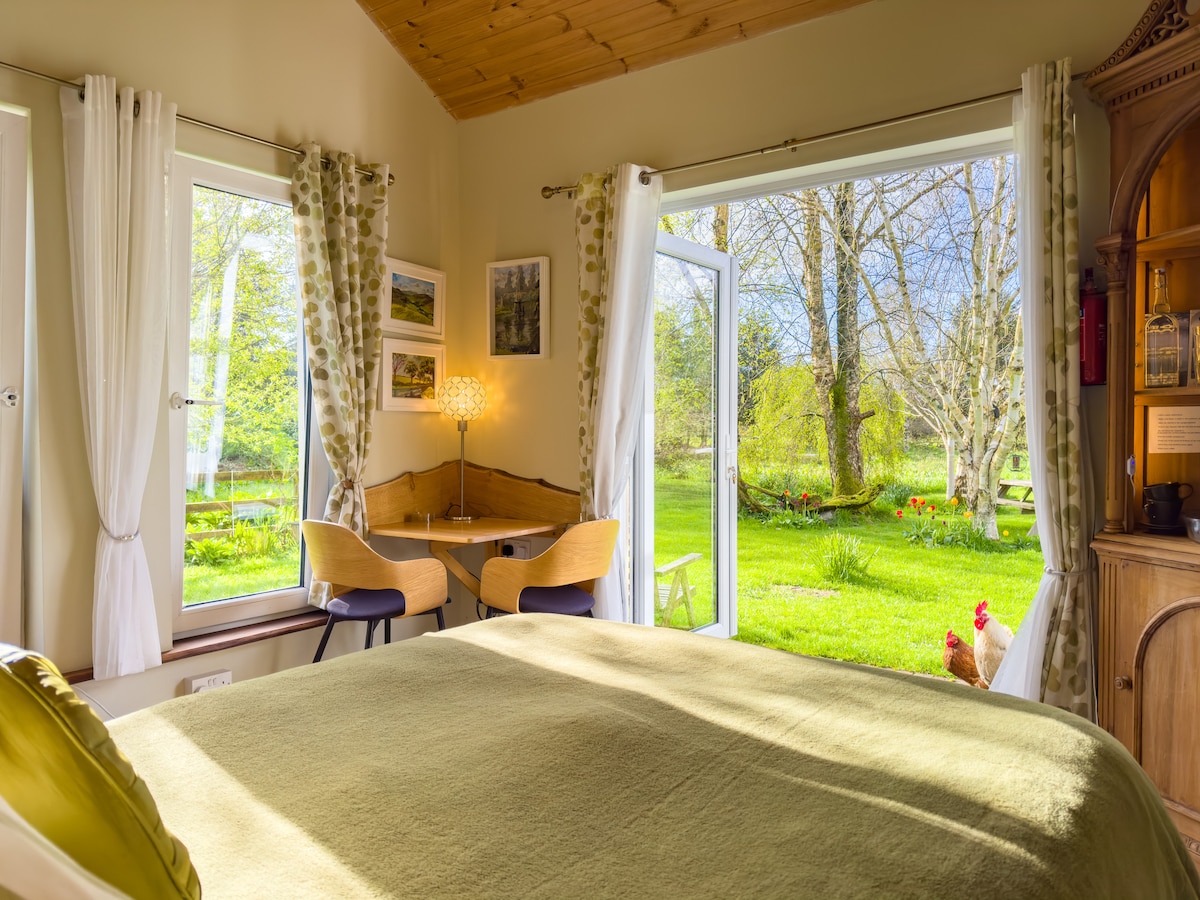 Meadowbrook Studio is a cosy, self-contained space which is ideal for a relaxing short break. With its own private entrance, it offers comfort and privacy, including a comfortable double bed with fresh linens, excellent WiFi, Smart TV, and a kitchenette. Guests can enjoy a self-serve continental breakfast, while outside, an outdoor kitchen with gas BBQ and pizza oven creates a perfect setting for dining in the fresh Wicklow air after a day exploring nearby forests, valleys, and coastline.