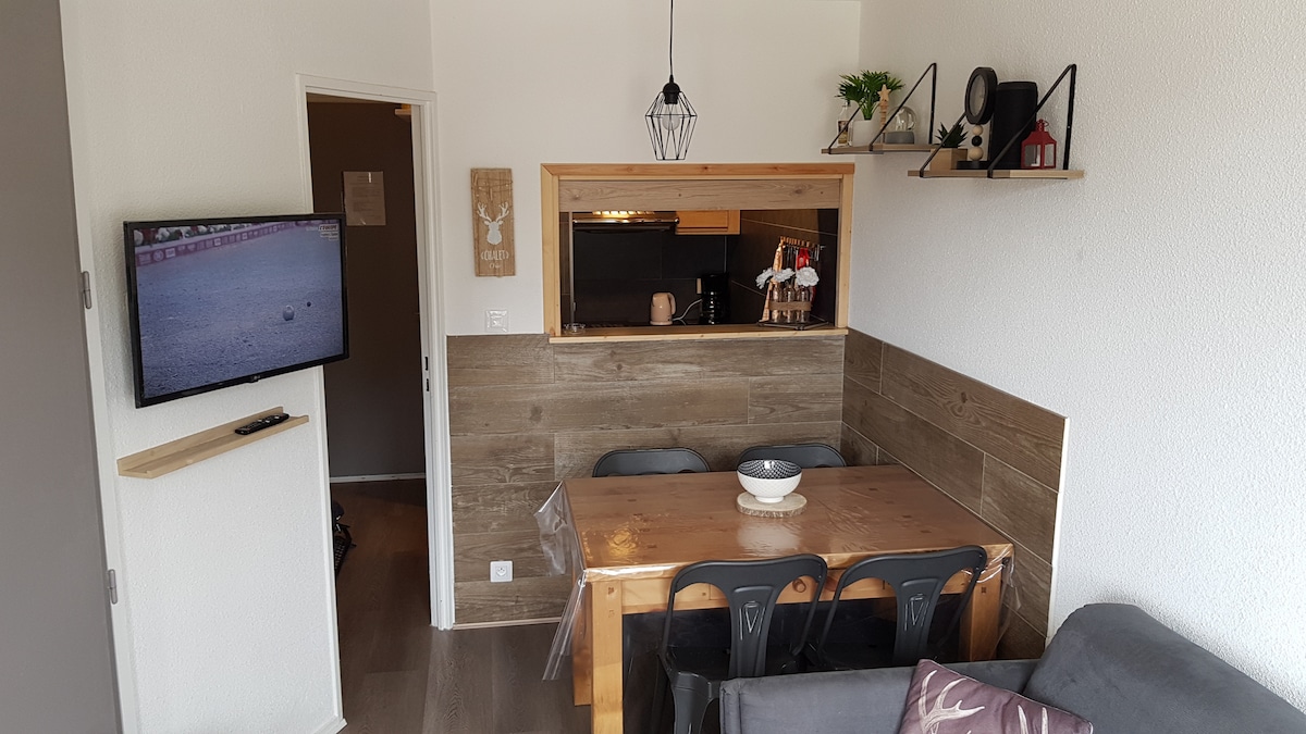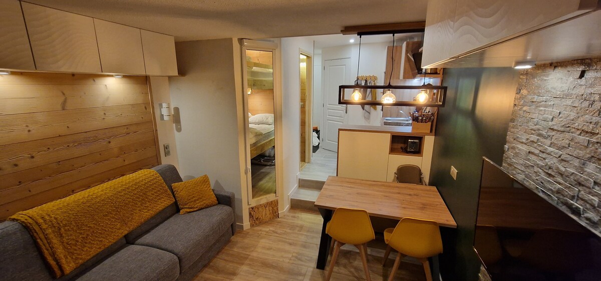 The apartment of 28m2 is entirely renovated. It has a double bedroom (140/200) with storing space. The living room has a confortable sofa (that can convert into a sleeping twin bed), a TV, an internet WIFI. The kitchen is equipped of one microwave, of a dishwasher, refrigerator, sticks vitreous ceramic and electric hob. The bedlinen and towels are included for the winter (for stays of more than 3 nights and 10€/person for summer and shorts stays). Bike aren't accepted in the apartment.