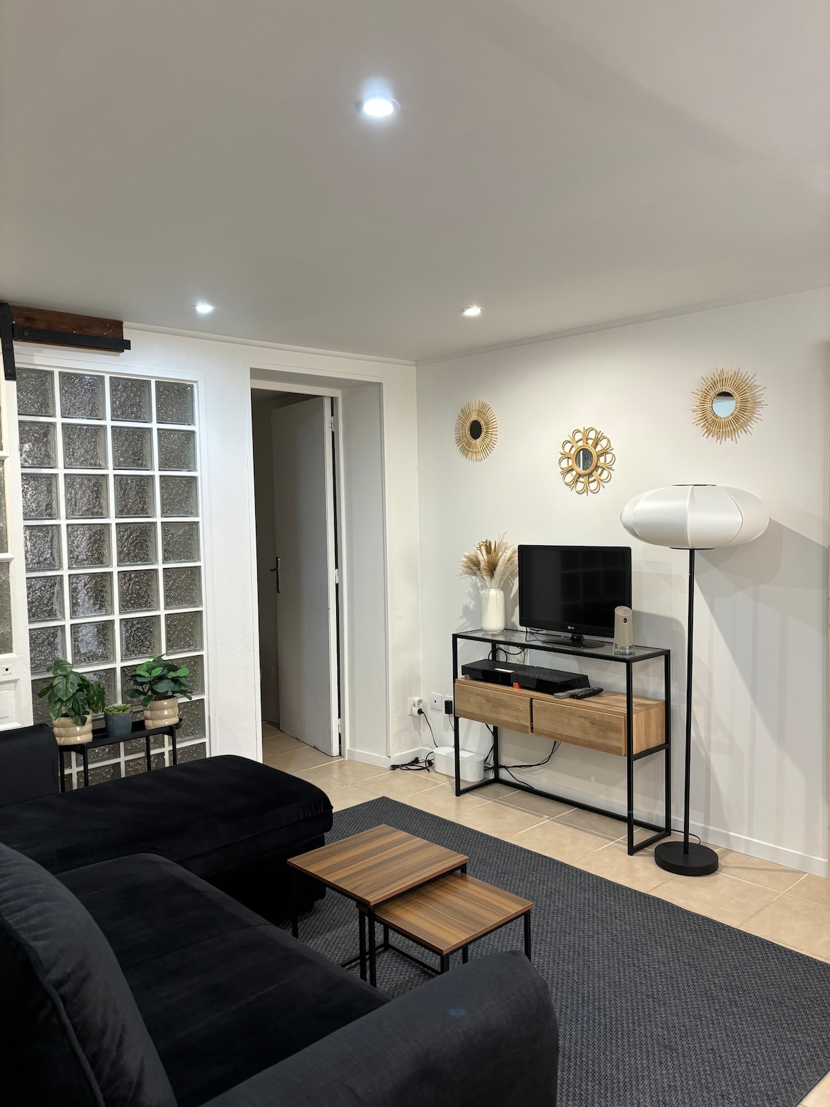 Situé à l étage d une maison individuelle au calme avec jardin et parking clôturés. Entrée indépendante, salle d eau avec wc (serviettes fournies), kitchenette équipée d une cafetière senseo, micro ondes, évier, frigo, plaque de cuisson induction, vaisselle, table, chaises TV (torchons à vaisselle fournis). La chambre comprend coin salon avec TV , lit 140cm, commode, portant. (DRAPS non fournis) possibilité location draps 10 euros.menage 20 euros. non adapté aux enfants de moins 8 ans.