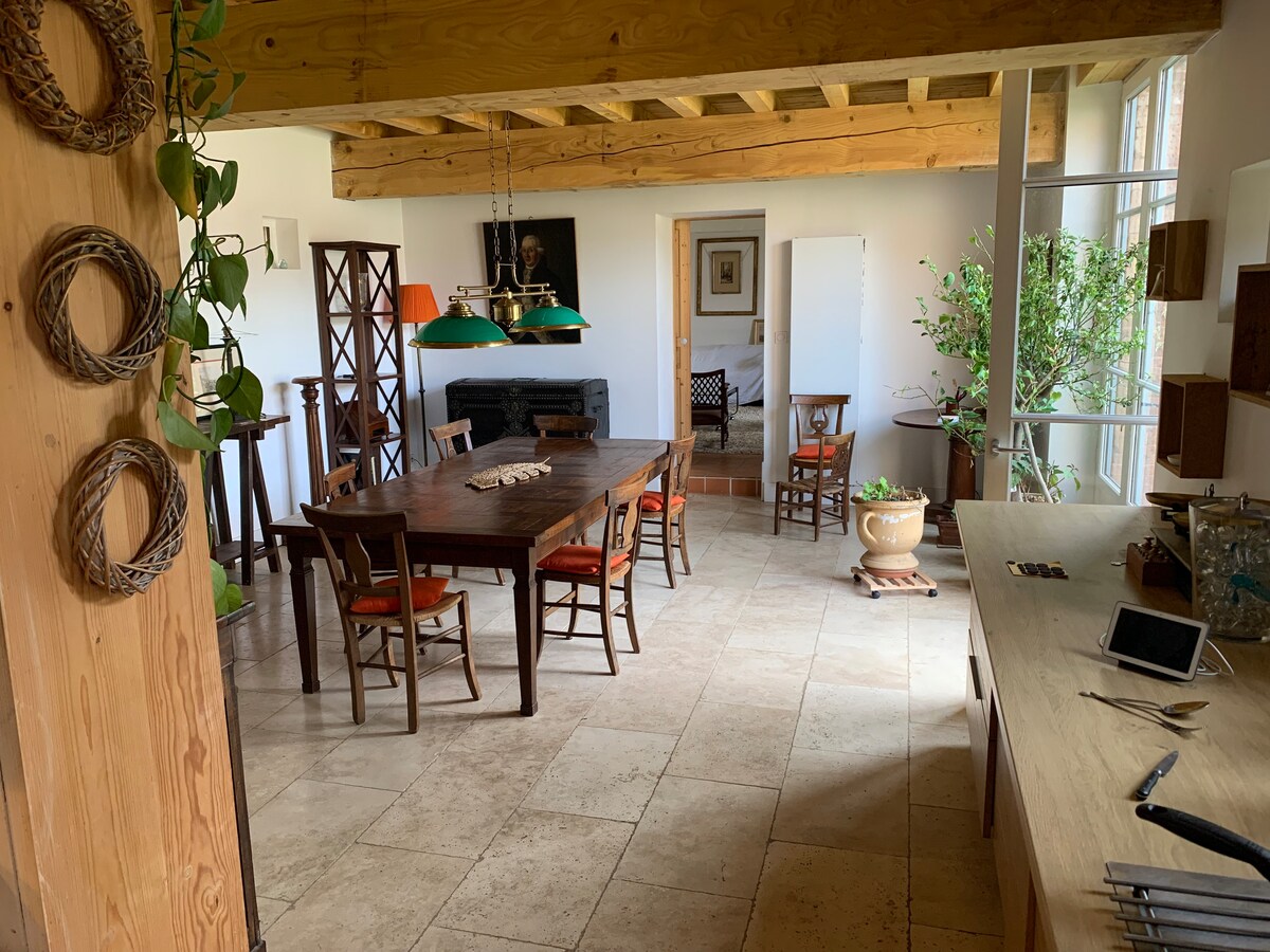 매력적인 듀플렉스 스위트, 인접한 벽돌과 페블 로라가이스 하우스. 독립적인 출입구. 최대 5명 + 아기. 레 쿨뢰르 뒤 방 게스트하우스 웹사이트를 참조하세요. 수제 아침 식사 포함, 대부분 유기농 및 현지 식재료. 저녁 식사 추가 €19부터. 채식주의자도 가능합니다. 아름다운 시골. 도보. 툴루즈 20km 거리. 대중교통. 1층: 침실 침대 160. 바닥: 작은 거실, 사무 공간, 플랫폼에 140 및 90 매트리스. 욕실과 별도의 화장실. 게스트 2명의 경우 침대 2개에 대해 1박당 13유로가 추가됩니다.