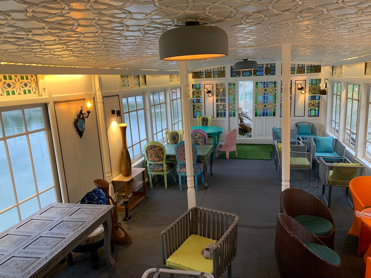 이 숙소는 카슈미르에서 처음으로 유일하게 하우스보트에 카페가 있는 숙소이며, 도시 한가운데에 위치해 있지만 작은 마을의 분위기를 자랑합니다. 웅장한 전망으로 둘러싸여 있으며, 침실 창문에서 일출/일몰, 산, 강 전망을 감상할 수 있습니다. 편안한 숙박을 위해 동급 최고의 피팅을 갖추고 있습니다. 조용하고 평화롭고 고요하며 편안합니다. 카슈미르의 환대를 몰입적으로 경험하려면 저희와 함께 머물러 보세요. 조식 또는 저녁 식사가 포함된 요금