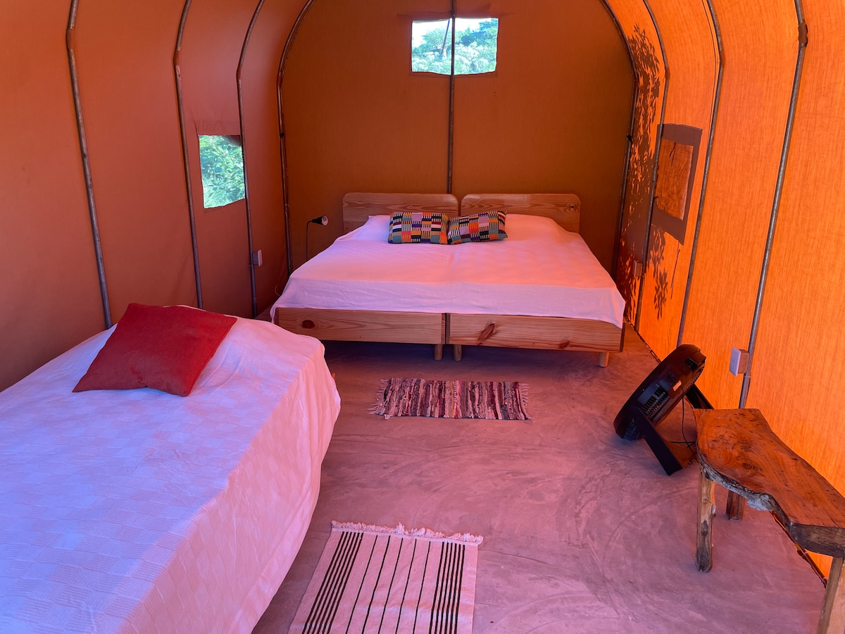 Si es usted aventurero y ama la naturaleza, ¡Este es su sitio! Acampada pero lujosa, conocida como Glamping, nos encontramos en Altos de la Caobita, un eco-hotel que también ofrece este servicio. Ofrecemos infinity pool y unas vistas impresionantes a la bahía de Azua donde se encuentra Playa La Caobita. If you are adventurous and love nature, this is your place! Glamping with comfort in a ecolodge with an infinity pool and a breathtaking view near Caobita beach in Azua