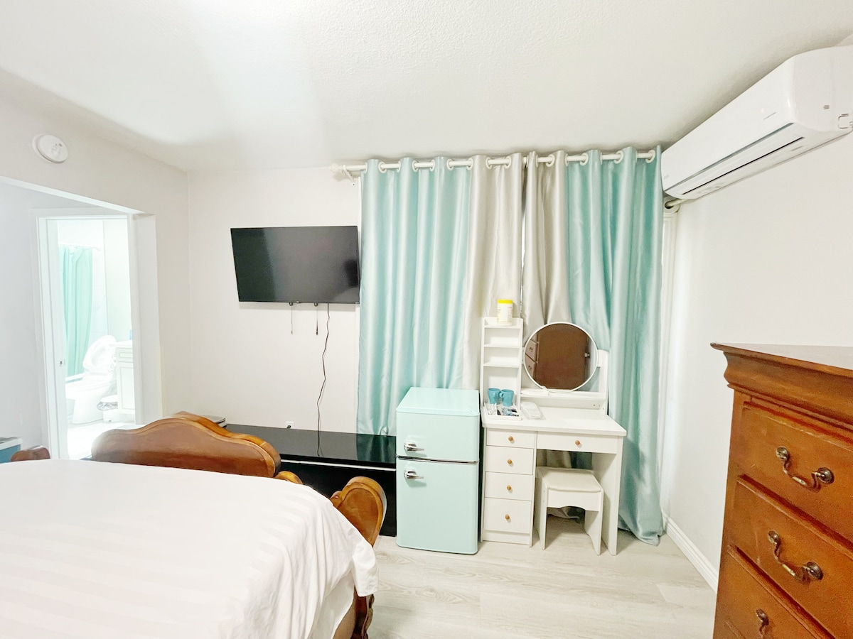 발드윈 파크 시내에 위치한 새롭게 리모델링한 넓은 스튜디오를 방문해 보세요. 모든 레스토랑, 상점, 식료품점까지 도보로 갈 수 있는 거리에 있습니다. 이 스튜디오는 게이트가 있는 숙소이며 전용 출입구, 주방, 욕실이 마련되어 있으며 다른 사람과 교차하지 않습니다. 최신 55인치 4K 스마트 TV, 새로운 주방 용품, 새로운 가구. 셀프 체크인/무료 주차/연중무휴 무료 세탁 이용 가능. DTLA까지 18마일, 유니버설 스튜디오까지 25마일, 디즈니 파크까지 27마일 거리에 있습니다.