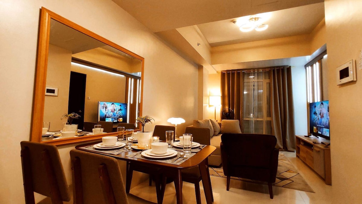 NAIA 공항과 수캣 스카이웨이 출구 근처에 위치하고 있습니다. 시설이 완비되고 에어컨이 설치된 이 콘도는 스테이케이션이나 장기 숙박에 적합합니다. 주방용품(냉장고, 전자레인지, 인덕션 레인지, 밥솥, 물 디스펜서)과 조리도구가 완비되어 있습니다. 세탁을 위한 세탁기와 넷플릭스, 디즈니+, 아마존 계정이 있는 50인치 안드로이드 TV도 준비되어 있습니다. 언제든지 셀프 체크인/아웃이 가능합니다. 수영장 및 기타 편의 시설을 이용하실 수 있습니다(평일 제외).