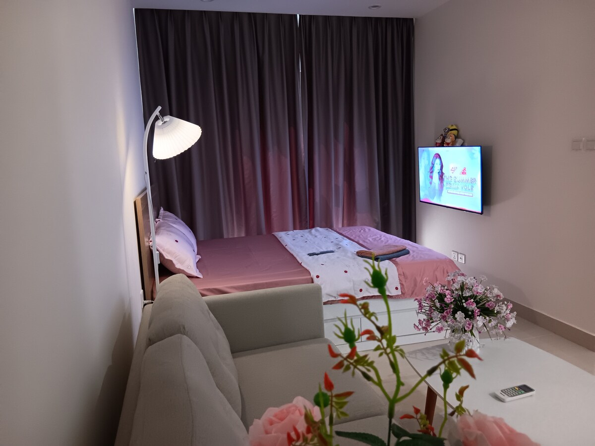 Chào mừng bạn đến với căn hộ Masteri studio cao cấp, nơi bạn có thể thư giãn với tầm nhìn hồ nước uốn lượn và toàn cảnh thành phố. Căn hộ được trang bị đầy đủ: điều hoà 2 chiều, máy giặt, nước nóng, tivi, tủ lạnh, bếp và đồ dùng nấu ăn. Tòa nhà có siêu thị, ngân hàng, quán ăn Hà Nội đặc trưng ngay bên dưới. Chỉ vài bước là tới trung tâm mua sắm, rạp chiếu phim, công viên và biển nhân tạo 24ha! Căn hộ luôn được giữ gìn sạch sẽ và chăm chút kỹ lưỡng – bạn chỉ việc xách vali đến và tận hưởng!