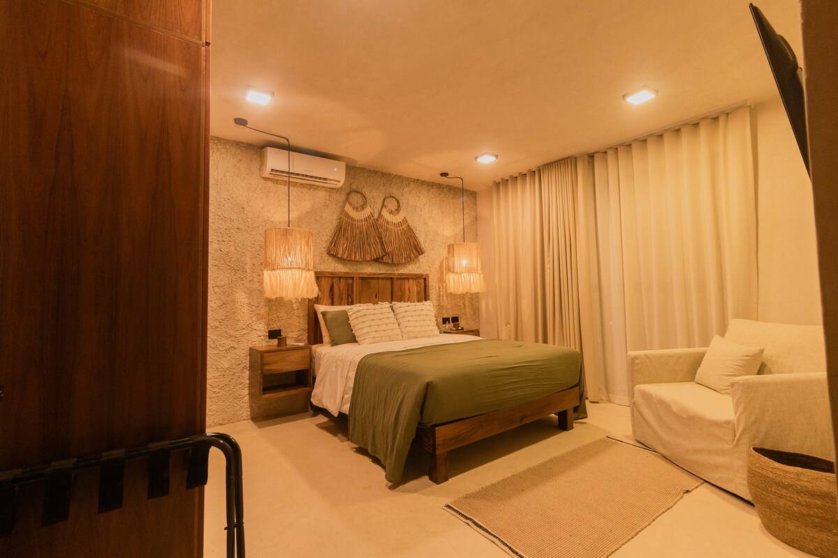 따뜻한 숙박에 필요한 모든 서비스를 갖춘 아름답고 편안한 객실. 킹사이즈 침대 1개, 싱글 침대 1개, 에어컨, 천장형 선풍기, 넷플릭스, HBO, 프라임 비디오가 있는 스마트 TV), 미니바, 커피 머신, 와이파이, 전용 욕실이 있습니다. 라구나는 단 3블록, 마켓은 1블록, 센터는 3블록 거리에 있습니다. 객실 요금에 자전거 3대와 완비된 주방이 포함되어 있습니다.