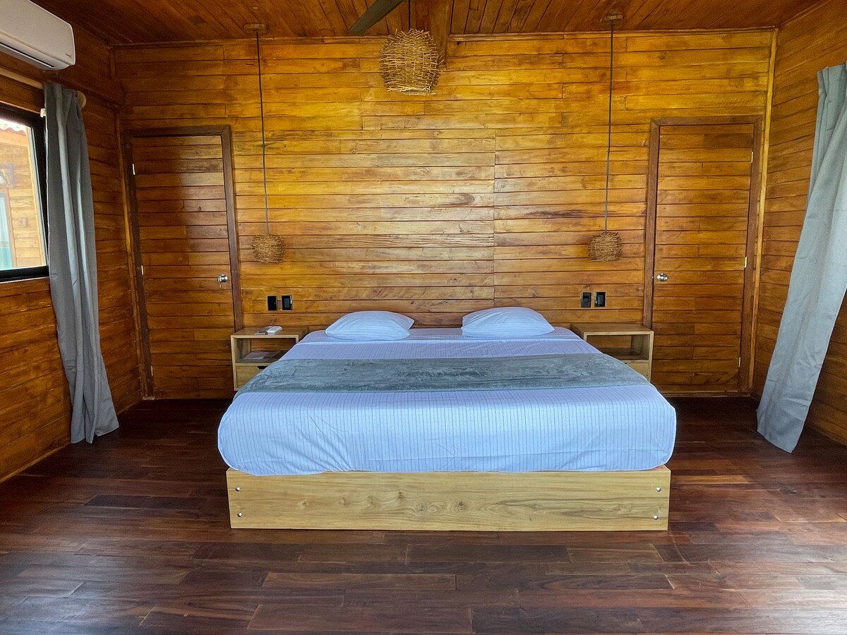 방갈로에는 킹사이즈 침대, 매일 보충되는 맥주 1병, 콜라 1병, 커피 1병이 구비된 냉장고, 에어컨, TV, 넷플릭스, 선풍기, 옷장, 전용 욕실, 샴푸, 바디 비누, 린스 등이 있습니다. 테라스에는 무료로 사용할 수 있는 패들 카약이 있으며, 아름다운 정원과 물속에 있는 팔라파가 있는 선착장도 있습니다. 진정한 천국입니다. 환영합니다.