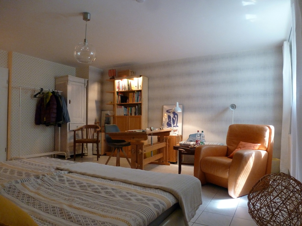 1 룸 아파트, 가구 및 리모델링 완료. 책상, TV, 더블 베드 및 소파 베드가 있는 거실/침실. 인덕션 쿠킹 플레이트, 냉장고, 싱크대, 식기 세척기, 전자레인지, 커피 머신, 주전자, 토스터, 계란 찜기가 있는 새로운 주방 샤워기와 변기, 헤어 드라이어가 있는 욕실 복도에는 빌트인 옷장, 세탁 건조기가 있습니다. 이 아파트는 바트 조덴 암 타우누스의 음악가 지구에 위치한 저희 자택의 1층에 있습니다. 기차역까지 도보로 약 15분 거리 또는 배트 조덴 중심부 비흡연자만 가능합니다.