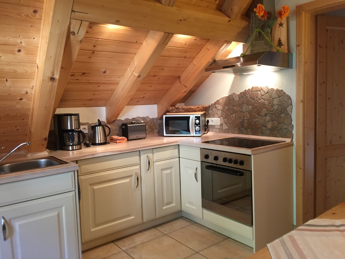숙소 전용 출입구가 있는 매력적이고 편안한 아파트에 오신 것을 환영합니다. 편안한 숙박을 즐기기에 완벽합니다. 시설이 완비된 주방, 케이블 TV, 무료 와이파이 등 편안한 저녁 시간을 보내거나 재택 근무를 하는 데 필요한 모든 것을 제공합니다. 특별한 하이라이트는 정자 가 딸린 인접한 초원입니다. 야외에서 아늑한 아침 식사를 즐기기에 이상적입니다. 주말이든 장기 숙박이든 내 집처럼 편안하게 지낼 수 있습니다.