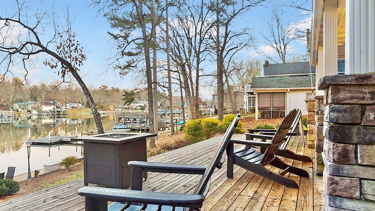 Welcome to Dock Holiday! Exciting updates to kitchen and garage for 2026! Let lake life take away all your cares and relax. Beautiful views of the lake from the deck, the gazebo or the dock and a great cove for kayaking or floating around the dock. Downstairs includes 1 King bedroom and a 2 Twin XL bedroom that share a large bathroom. Upstairs is the Master with a King bed and bathroom. Large flat yard for games or grilling. Float pad, floats, life vests and kayaks included.