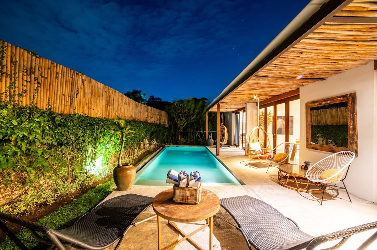 전용 해수 수영장과 멋진 정원이 내려다보이는 편안한 파빌리온에서 걱정을 잊어버리세요. 넓은 야외 정원 욕실에서 레인 샤워를 즐긴 후 정원 파빌리온에서 논과 열대 정원 전망을 감상하며 휴식을 취해보세요. 빌라 비아는 고급스럽고 프라이빗하며, 넓은 침실에는 킹사이즈 4주식 침대, 전용 드레싱룸, 욕실이 있습니다. 거실 공간에서 멋진 정원과 수영장이 내려다보이며 최고의 휴식을 취할 수 있습니다.