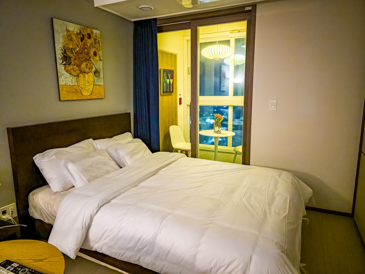 ์ด์ฒ ์ํฅ์ง ์์ ์์นํ ํดํฐ์ค ์คํ ์ด ์ธ๋ฏธ ํธ๋ฆฌํ๋ฃธ์ ๊ฐ์กฑ, ์น๊ตฌ, ์ถ์ฅ ๋๋ฃ์ ํจ๊ป ๋จธ๋ฌผ๊ธฐ์ ์ด์์ ์ธ ์ ์ถ ์ํํ ๋น์ฆ๋์ค ํธํ ์ ๋๋ค. ๋๋ธ์นจ๋ 1๊ฐ์ ์ฑ๊ธ์นจ๋ 1๊ฐ๊ฐ ๋ง๋ จ๋์ด 2~3์ธ์ด ํธ์ํ๊ฒ ์ด์ฉํ ์ ์์ผ๋ฉฐ, ์ฃผ๋ฐฉ, ์ธํ๊ธฐ, ์ด๊ณ ์ ์์ดํ์ด ๋ฑ ์ํ์๋ฐ์ ํ์ํ ๋ชจ๋ ์์ค์ด ์๋น๋์ด ์์ต๋๋ค. 55์ธ์น ์ค๋งํธTV์ ๋ทํ๋ฆญ์ค ๊ตฌ๋ ์๋น์ค๋ ์ ๊ณต๋์ด ์ธ์ ๋ ์ฌ์ ๋ก์ด ์๊ฐ์ ์ฆ๊ธธ ์ ์์ต๋๋ค. ์ฐฝ๊ฐ๋ก ํผ์ณ์ง๋ ์ํฅ์ง ํธ์๋ทฐ๋ ๋์ฌ ์ ํน๋ณํ ํ๋ง์ ์ ์ฌํฉ๋๋ค. ๊ฑด๋ฌผ 3์ธต์๋ ํฌ์๊ฐ ์ ์ฉ ํฌ์ค์ฅ์ด, 2์ธต์๋ ํ์คํ์ค ์ํฅ์ ์นดํ๊ฐ ์์ด ๋์ฑ ํธ๋ฆฌํฉ๋๋ค. ๋ฌด๋ฃ์ฃผ์ฐจ์ ๊ด๋ฆฌ๋น ํฌํจ ํธํ ํ ๋ ์ง๋์ค๋ก ์ถ๊ฐ ๋น์ฉ ๋ถ๋ด์ด ์์ผ๋ฉฐ, ์ด์ฒํ๋ฆฌ๋ฏธ์์์ธ๋ , ํฐ๋ฏธ๋, ์๋ด ์๊ถ๊ณผ ๊ฐ๊น์ ์ถ์ฅ, ์ผํ, ์ฌํ ๋ชจ๋์ ์ต์ ์ ์ ์ง๋ฅผ ์๋ํฉ๋๋ค.