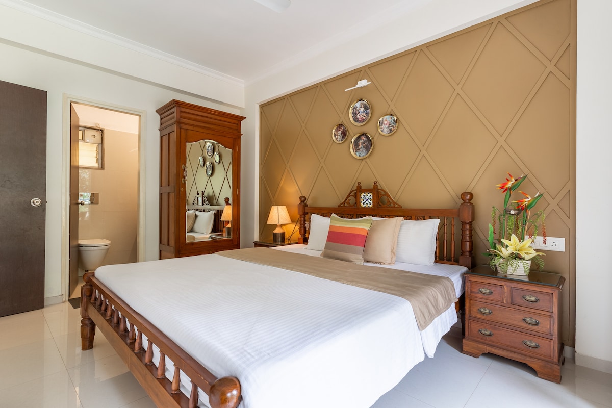넓은 2BHK 칸돌림 | 수영장 • 해변까지 도보 거리 •