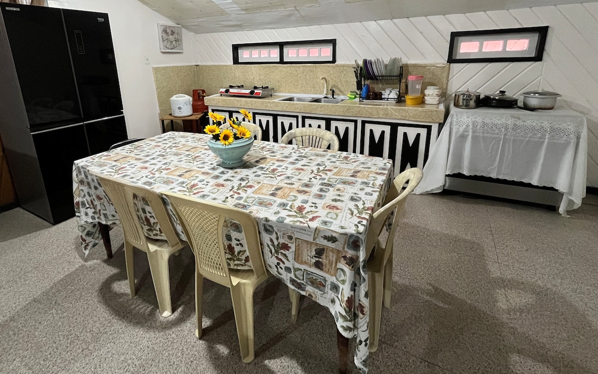 Our place is a spacious 3 bedroom apartment near Burnham Park & Baguio Public Market. It has a veranda in front and at the back where you can enjoy Baguio's cool air. If it gets too cold, step right back in & have your hot cocoa in front of a warm, inviting fireplace. It has 2 toilet & baths complete with bidet & shower heaters. The kitchen is equipped with everything you need to cook basic meals & serve a family of 11. It also has a refrigerator, microwave oven, electric kettle and gas stove.