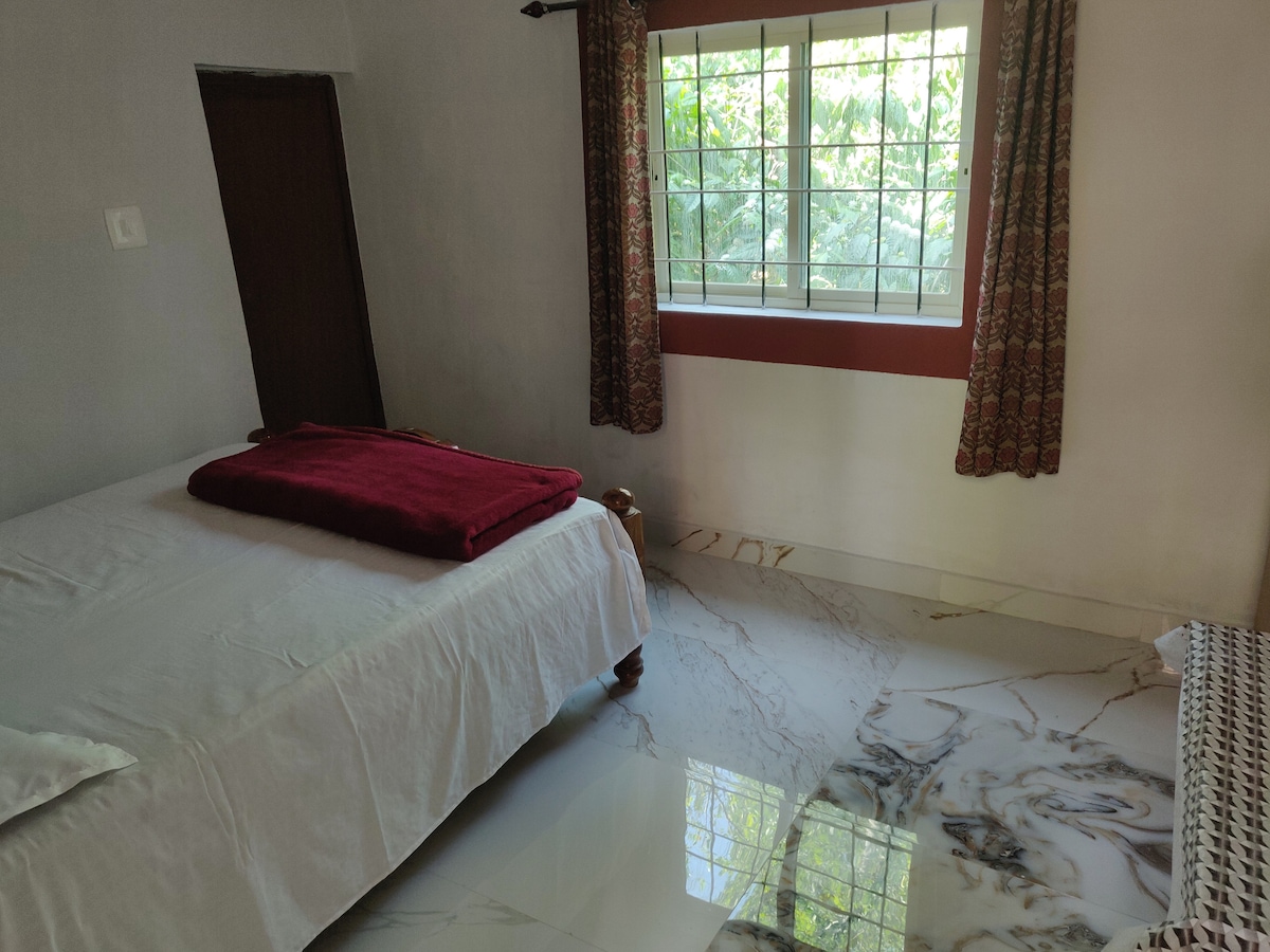 Reconnect with peace at our estate stay near Dubare Elephant Camp. Surrounded by lush coffee plantations and greenery, we offer free high-speed Wi-Fi, cozy rooms, parking space and a calm space ideal for work or relaxation. Enjoy freshly brewed estate coffee with farm-fresh cow milk. Explore Coorg’s scenic trails and rivers or work from nature. Authentic home-cooked food, private independent space, and the warmth of living with our family experience Coorg like a local.