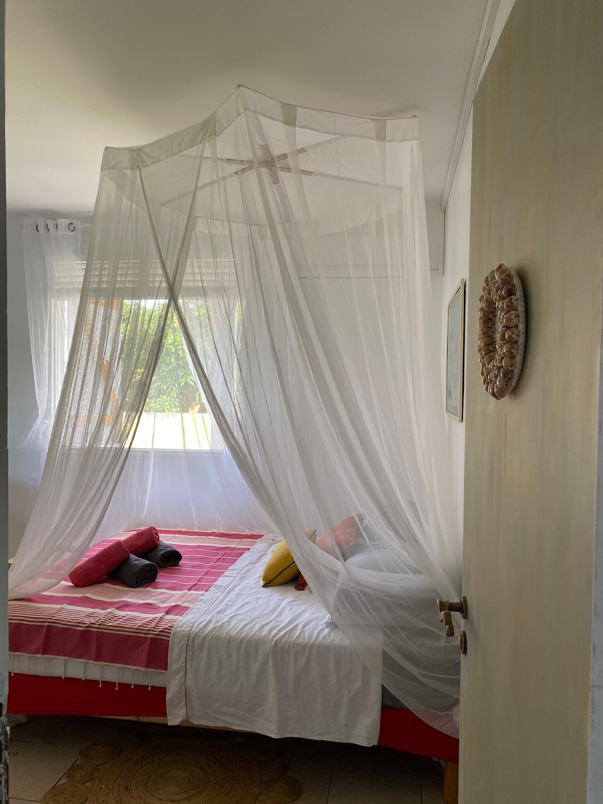 중심지와 해변 근처에 있는 70 ㎡ 의 멋진 단독 주택으로 4 ~ 6명을 수용할 수 있는 시설이 완비되어 있습니다. 이 숙소는 해변 (약국 레스토랑, 은행, 베이커리, 교통, 스포츠 경로, 어린이 공원) 까지 도보로 8분 거리에 편리하게 위치하고 있습니다. 섬에서 가장 아름다운 시장 중 하나를 즐길 수 있습니다. 에어컨이 설치된 객실 2개, 킹사이즈 침구, 고급 주방 개방형, 밝고 환기가 잘되는 거실이 구비되어 있습니다. 지붕이 있는 대형 테라스