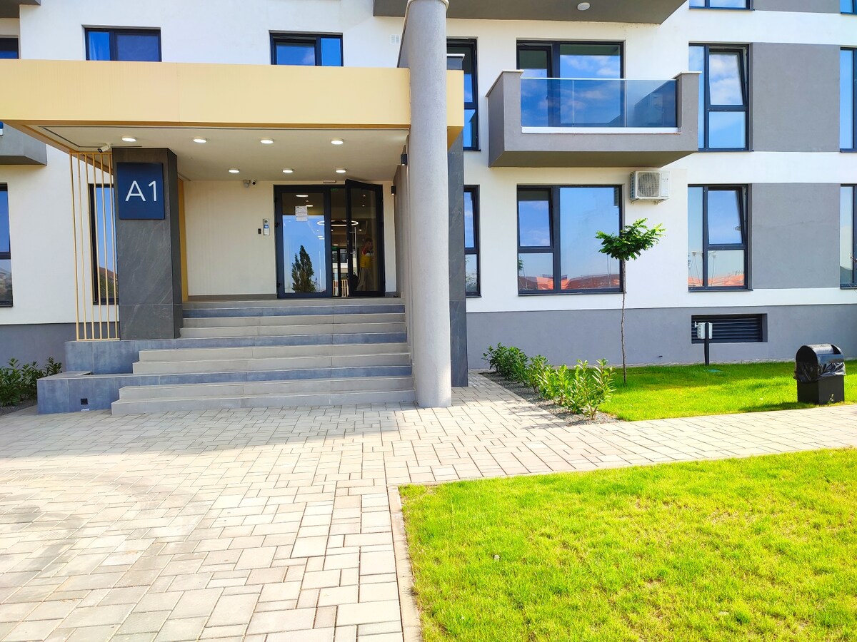 Two-room apartment, in a new residential complex Prima Premium Decebal Oradea. Located in a quiet area with video surveillance near the Prima Shop Shopping Center, with grocery stores, terraces, fast food, fitness room, beauty salon, cafe and park with children's playground. Parking space with video surveillance. The apartment is just 2 km from the city center, Oradea Fortress is 2.5 km away, and the Nymphaea Aquapark is 3 km away. Easy access to the airport.