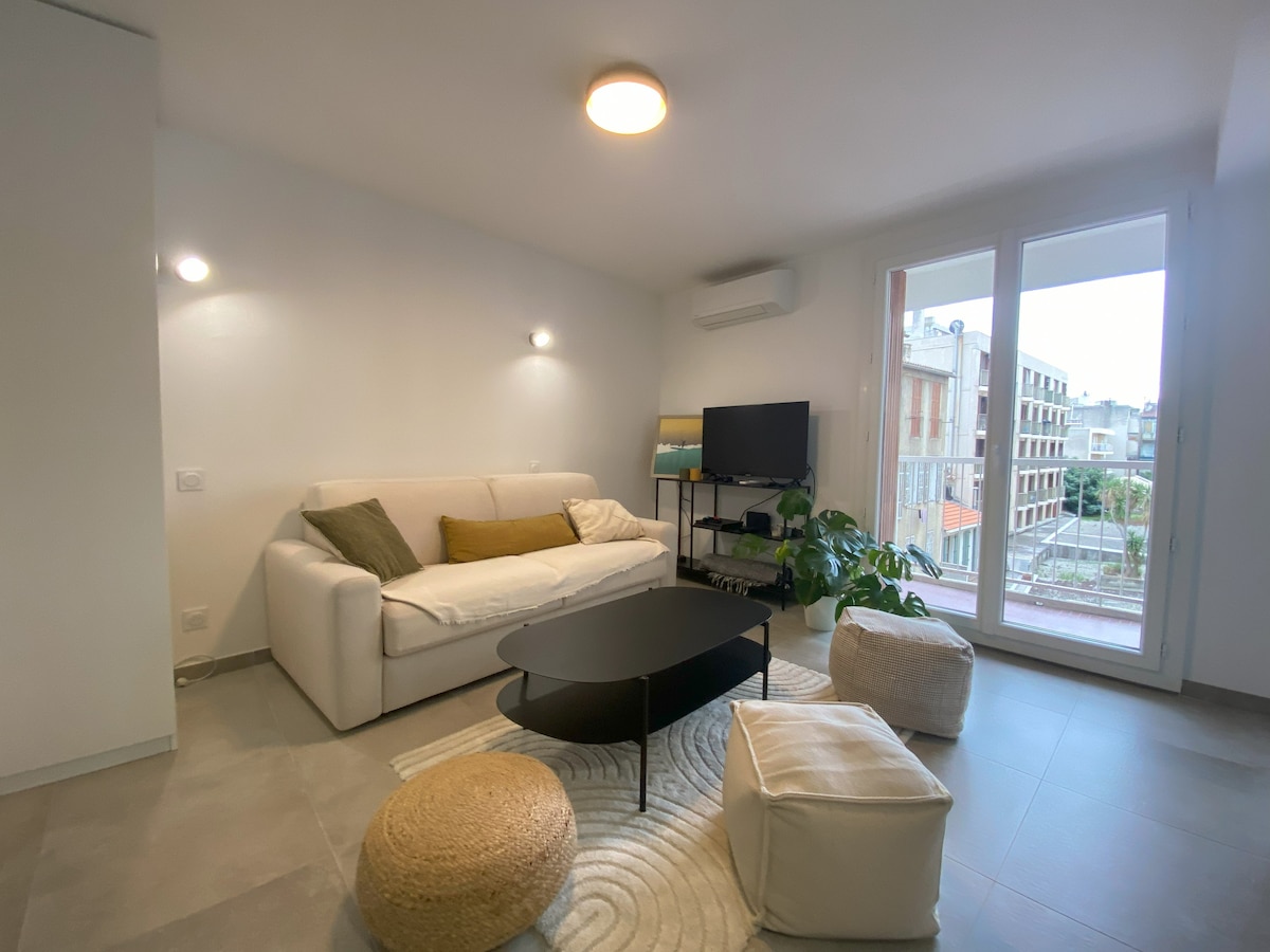 5번 째 구에 위치한 조용하고 안전한 주거지역에 있는 현대적인 27m² 스튜디오로, 리모델링되었으며, 엘리베이터가 있는 2층에 위치해 있습니다. 에어컨, 빠른 와이파이, 멋진 발코니, 매우 편안한 소파 베드. 실용적이고 친절한 숙박을 위한 완비된 주방. 마르세유를 둘러보거나 안심하고 일하기에 이상적입니다.
